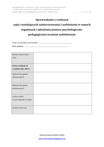 - Sprawozdanie z realizacji zajęć rozwijających zainteresowania i uzdolnienia w ramach organizacji i udzielania pomocy psychologiczno-pedagogicznej uczniom uzdolnionym