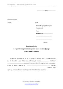 - Zawiadomienie o popełnieniu przez nauczyciela czynu naruszającego prawa i dobro dziecka