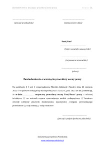 - Zawiadomienie o wszczęciu postępowania w sprawie ustalenia oceny pracy nauczyciela